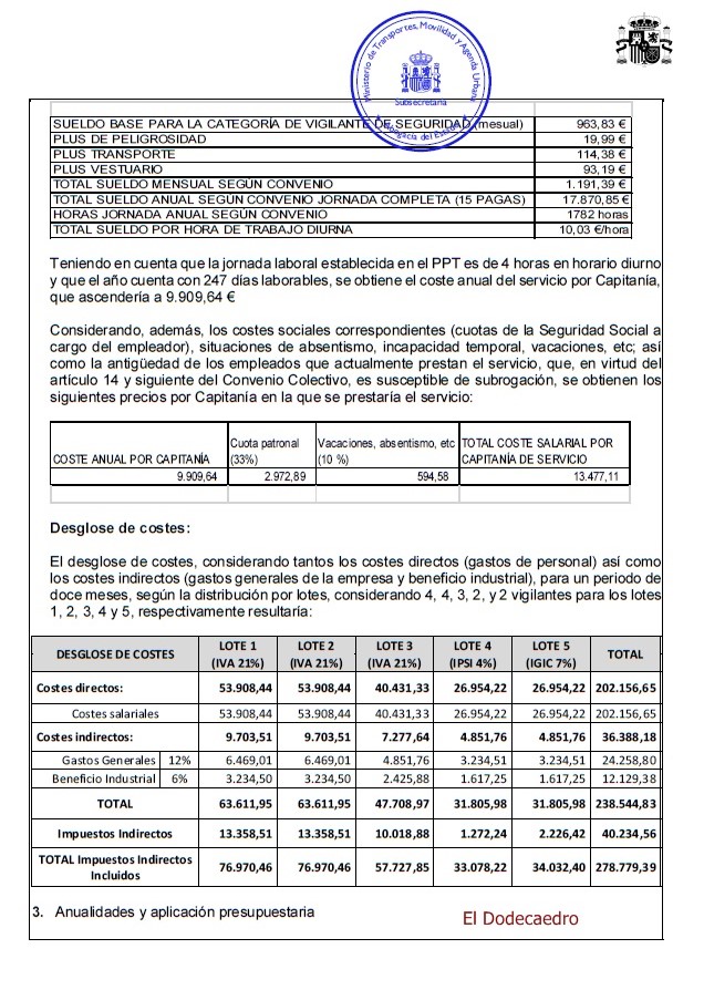 Objeto del contrato : Servicio de vigilancia y seguridad en diversas Capitanías Marítimas dependientes de la Dirección General de la Marina Mercante